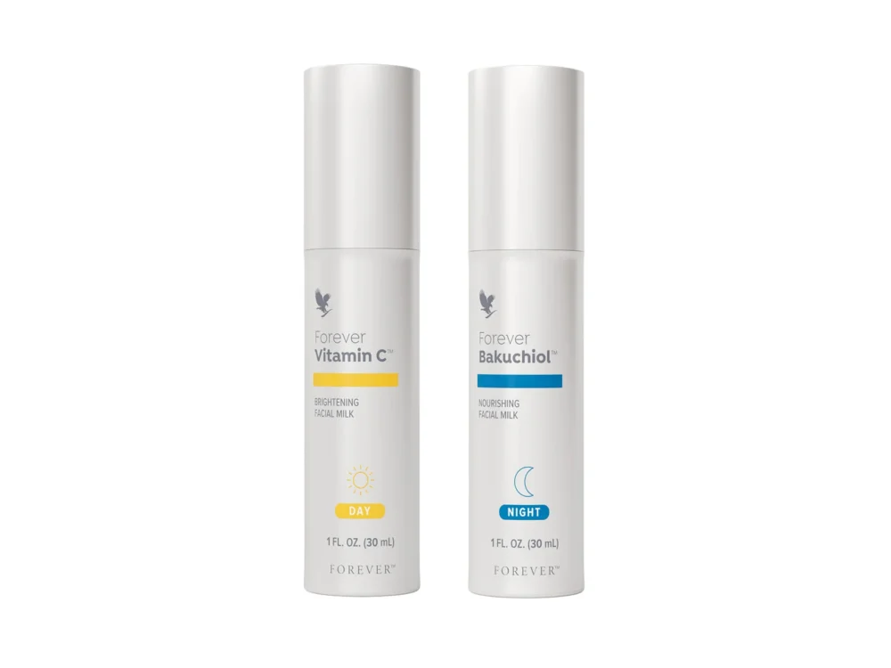 Dieses Duo fügt sich mühelos in deine tägliche Routine ein – morgens Vitamin C™, abends Bakuchiol™ – und lässt sich optimal mit allen weiteren Forever-Hautpflegeprodukten kombinieren. So entsteht ein perfekt abgestimmtes Pflegeritual für einen strahlenden und vitalen Teint, der von innen heraus leuchtet.